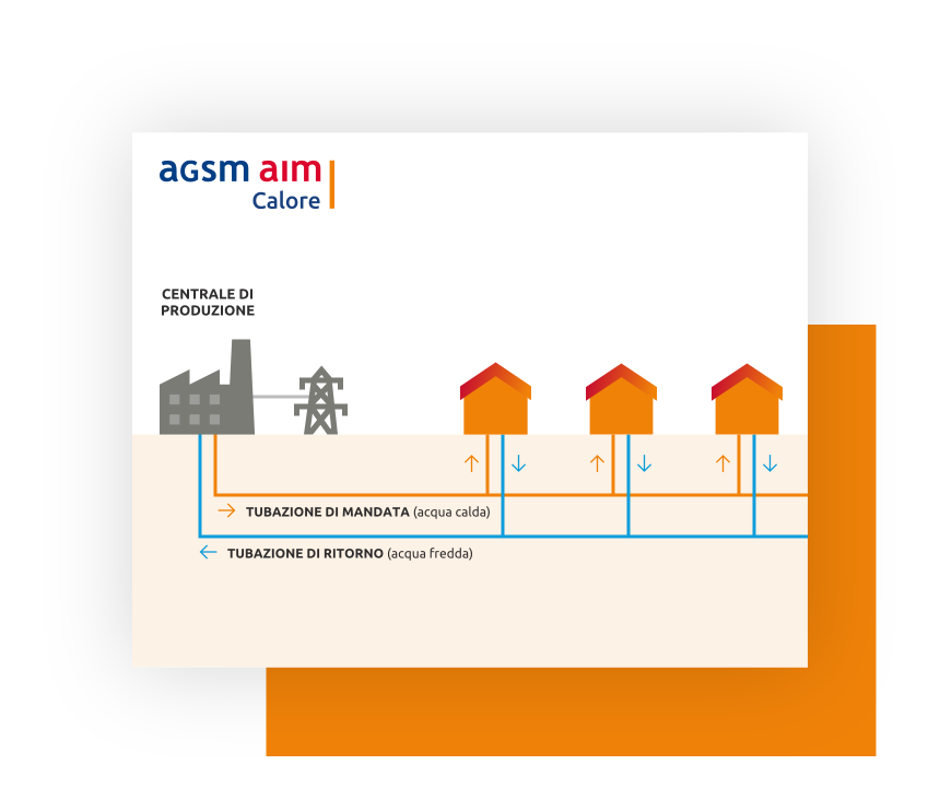 Il teleriscaldamento è un sistema moderno che permette il trasporto a distanza del calore, sottoforma di acqua calda, per riscaldare gli edifici e per uso sanitario. L’acqua, trasportata grazie a una rete di tubazioni sotterranee, raggiunge gli edifici allacciati assicurando il riscaldamento dell’abitazione. Una volta rilasciato il calore, l’acqua ritorna in centrale, pronta per ricominciare il ciclo.